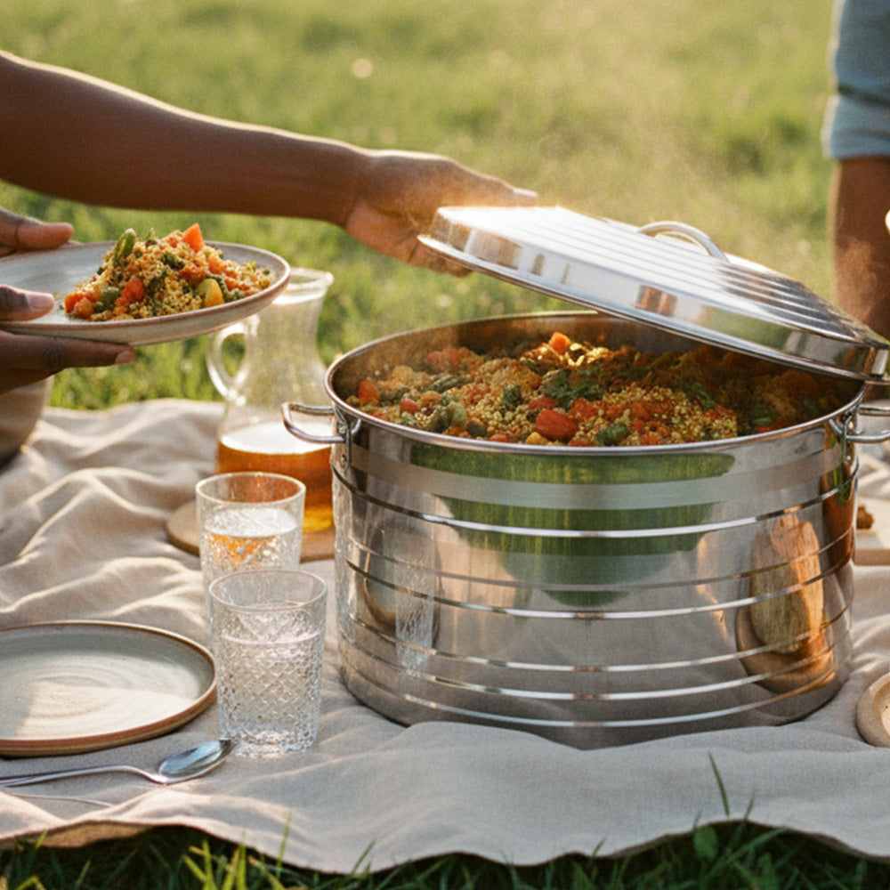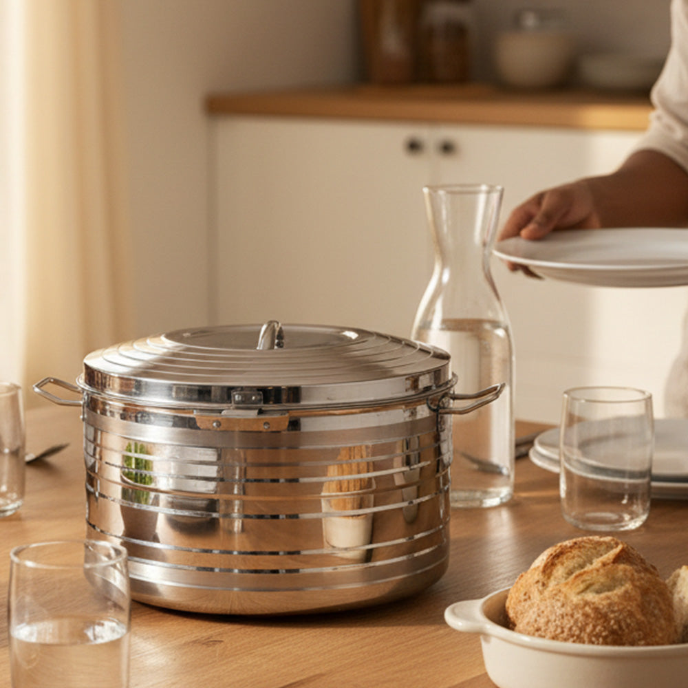 Couscous, tajines, ragoûts, soupes ou plats en sauce conservent ainsi leur moelleux et leur richesse aromatique pendant 6 à 8 heures, idéal pour les repas préparés à l’avance, les déjeuners au bureau, les tablées familiales, les événements particuliers ou les services professionnels en décalé.