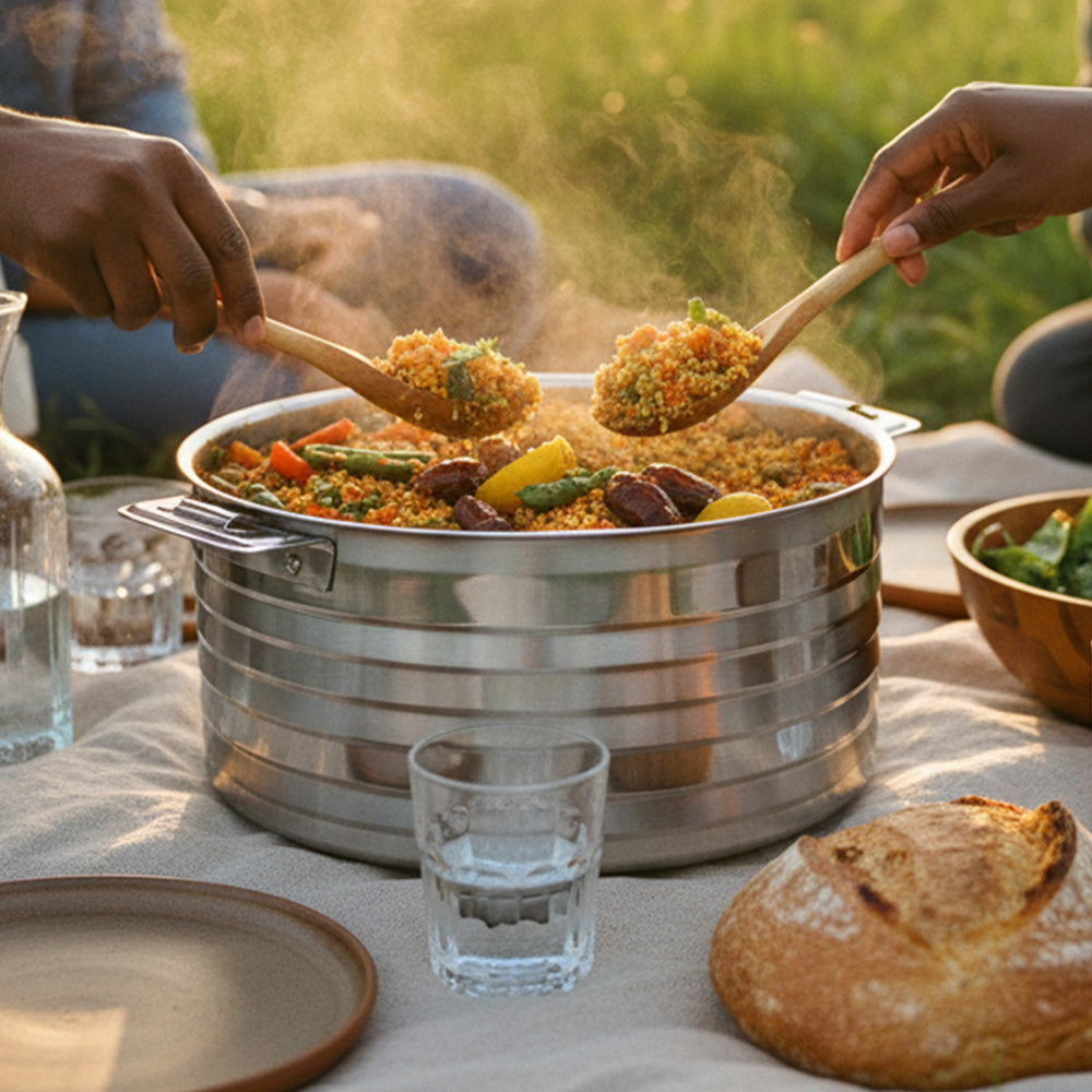 Couscous, tajines, ragoûts, soupes ou plats en sauce conservent ainsi leur moelleux et leur richesse aromatique pendant 6 à 8 heures, idéal pour les repas préparés à l’avance, les déjeuners au bureau, les tablées familiales, les événements particuliers ou les services professionnels en décalé.