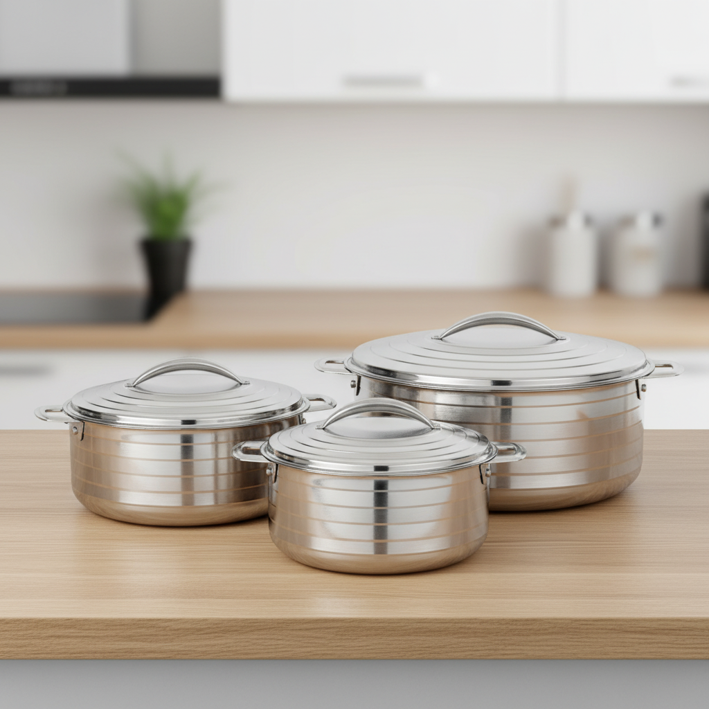 Ce lot de boîtes isothermes 3,5 L, 5 L et 8,5 L vous permet d’adapter facilement les quantités au nombre de convives et au type de plat. Chaque contenant maintient durablement la température de vos préparations, sans micro-ondes, tout en préservant leur goût et leur texture. Ensemble, ils couvrent aussi bien les repas du quotidien que les grands services, en cuisine familiale comme en contexte professionnel.