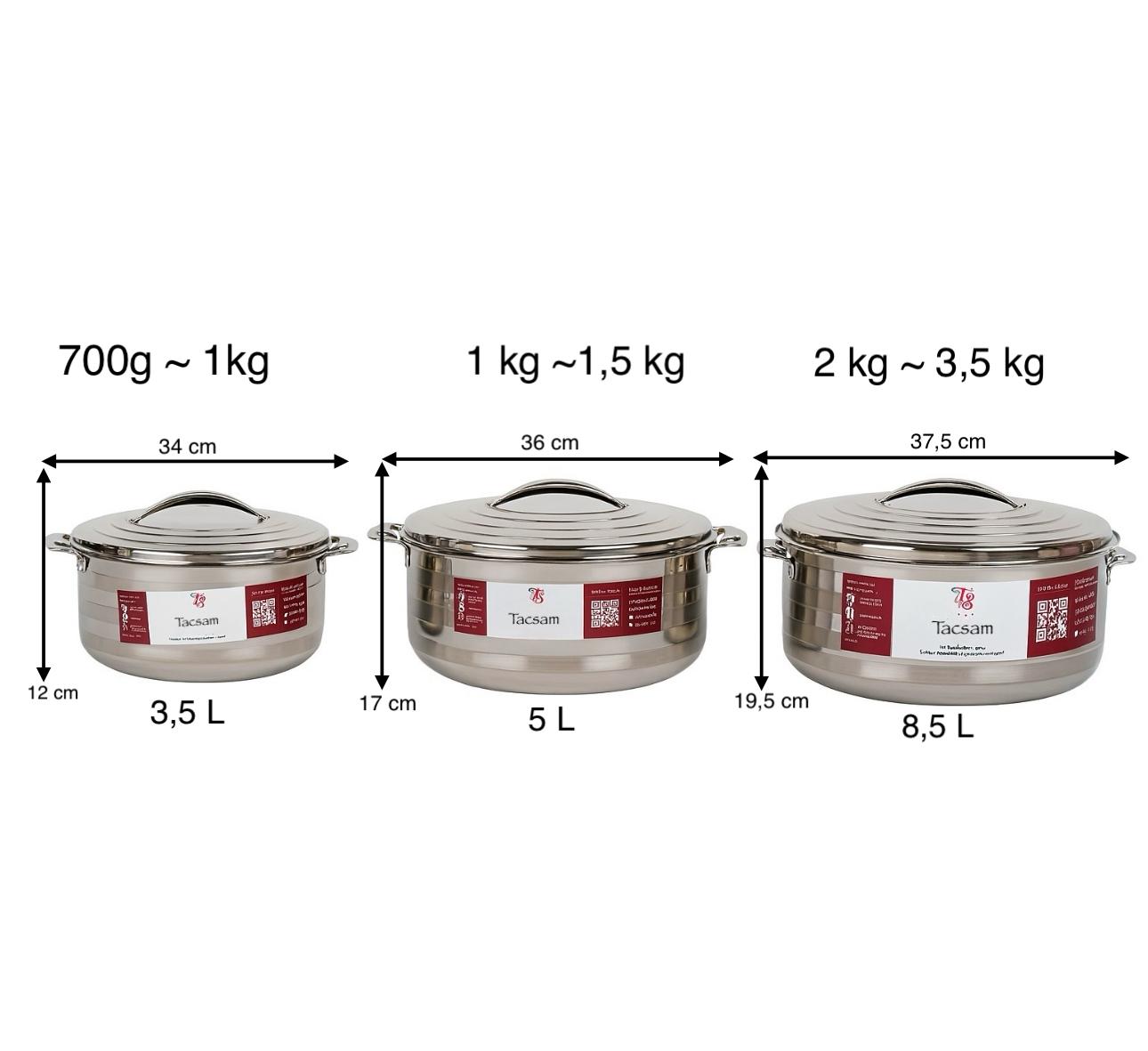 Couscous, tajines, ragoûts, soupes ou plats en sauce conservent ainsi leur moelleux et leur richesse aromatique pendant 6 à 8 heures, idéal pour les repas préparés à l’avance, les déjeuners au bureau, les tablées familiales, les événements particuliers ou les services professionnels en décalé.