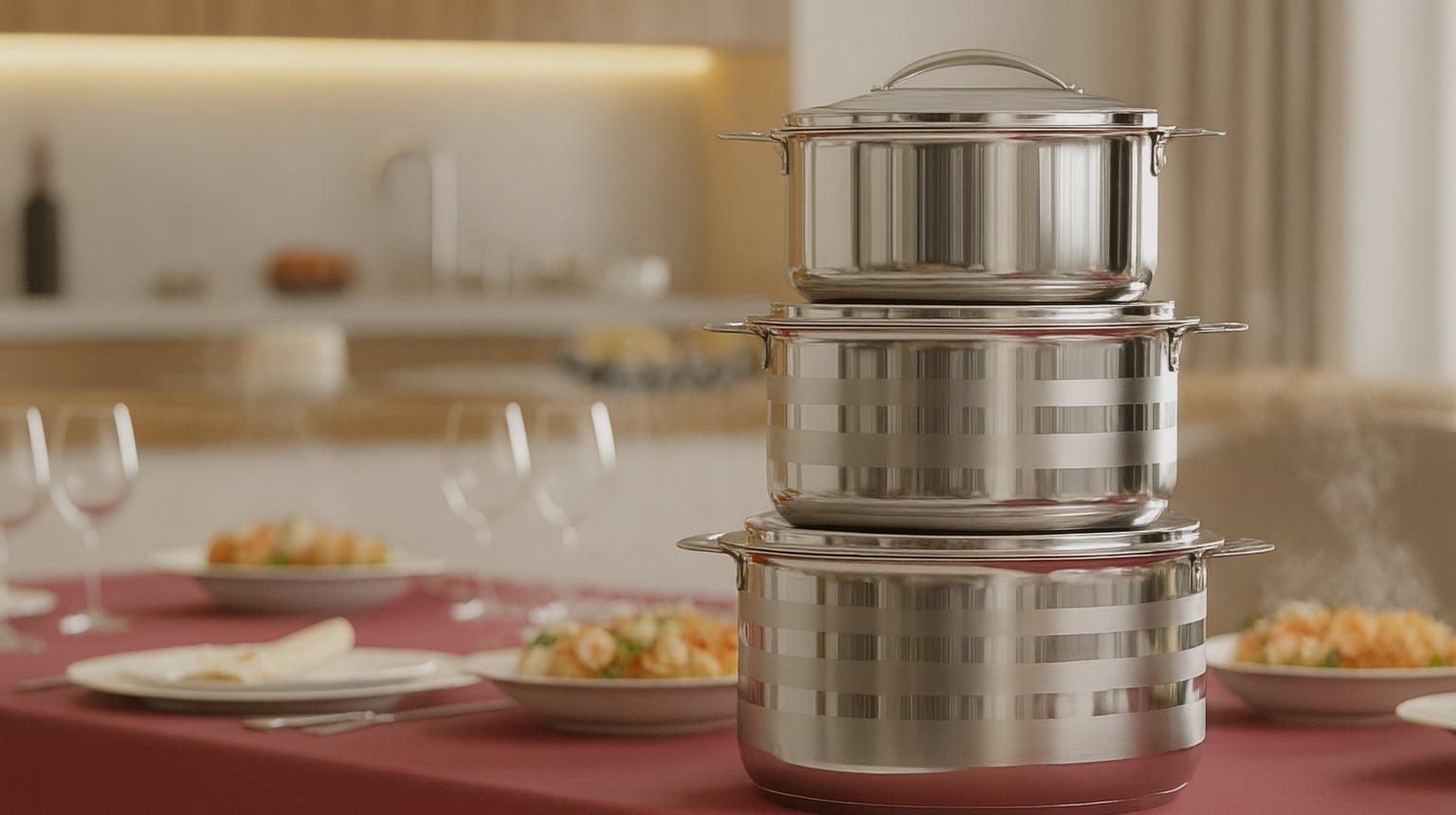 Avec leur finition effet miroir et trois volumes adaptés, ces boîtes s’intègrent aux buffets, réceptions et repas du quotidien. Les couvercles hermétiques garantissent un transport sûr, sans fuite ni perte de chaleur.