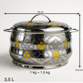 Le Contenant Isotherme Inox Prime Or 3,5 L allie esthétique et performance. Sa double paroi préserve efficacement la chaleur comme le froid pendant des heures, sans électricité. Parfait pour le quotidien comme pour les réceptions, il respecte le goût et la texture des aliments.
