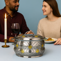 Avec son design bombé doré et sa finition miroir, ce contenant rehausse vos tables et buffets. Robuste et facile d’entretien, il convient aux particuliers comme aux professionnels (traiteurs, hôtellerie, événementiel).